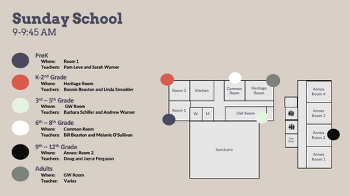 Sunday School is from 9-9:45AM