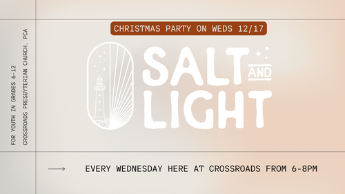 Salt & Light meets every Wednesday here at Crossroads from 6-8pm.